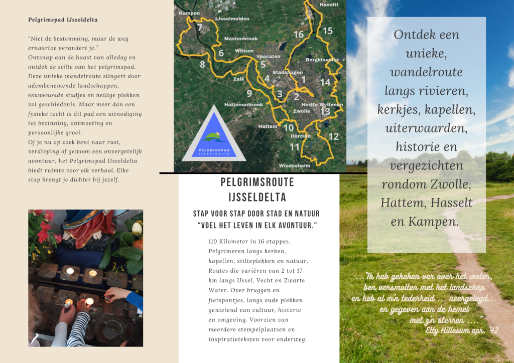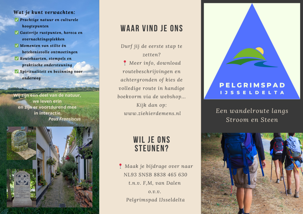 Dat doet het Pelgrimspad IJsseldelta. Bezoek de pagina’s voor informatie, etappes, routebeschrijvingen en het Wandelboekje Pelgrimspad. Verzamel je Pelgrimspad Stempelplaatsen en vraag het unieke certificaat op.